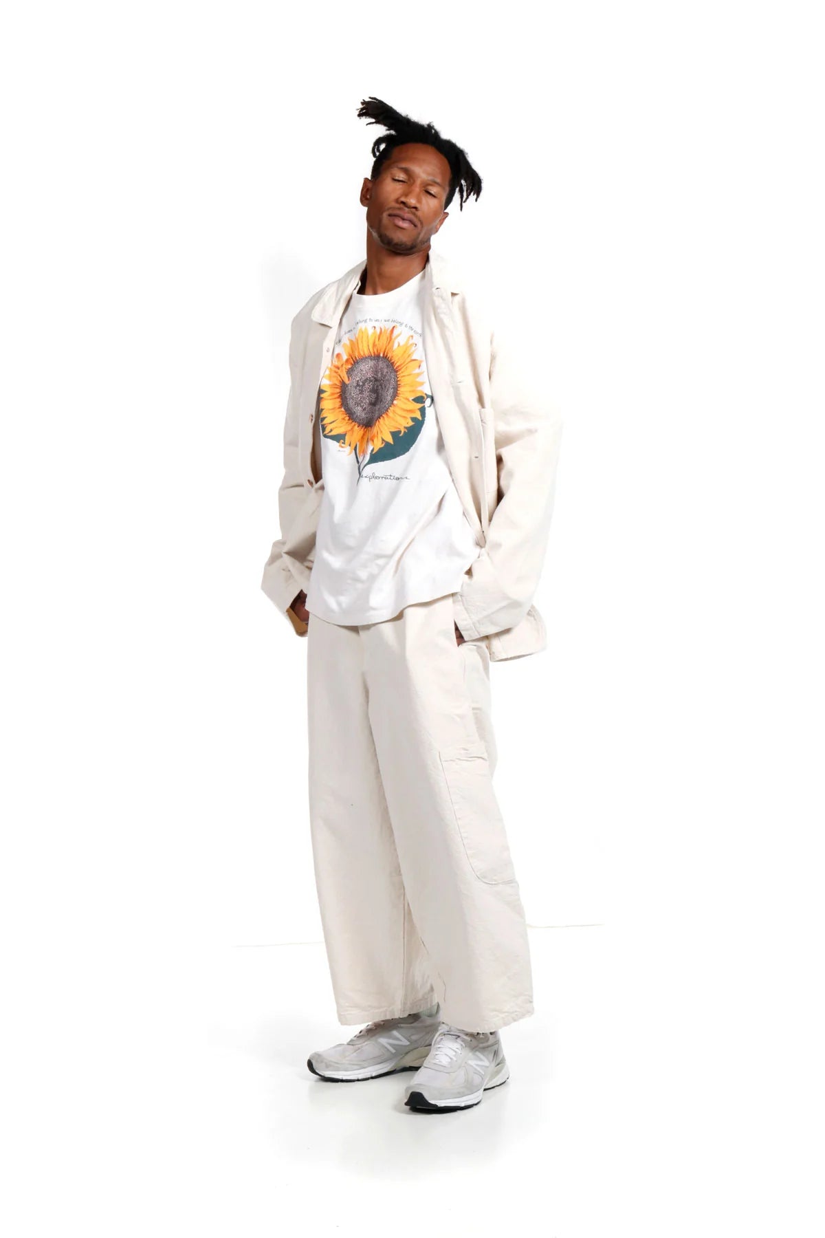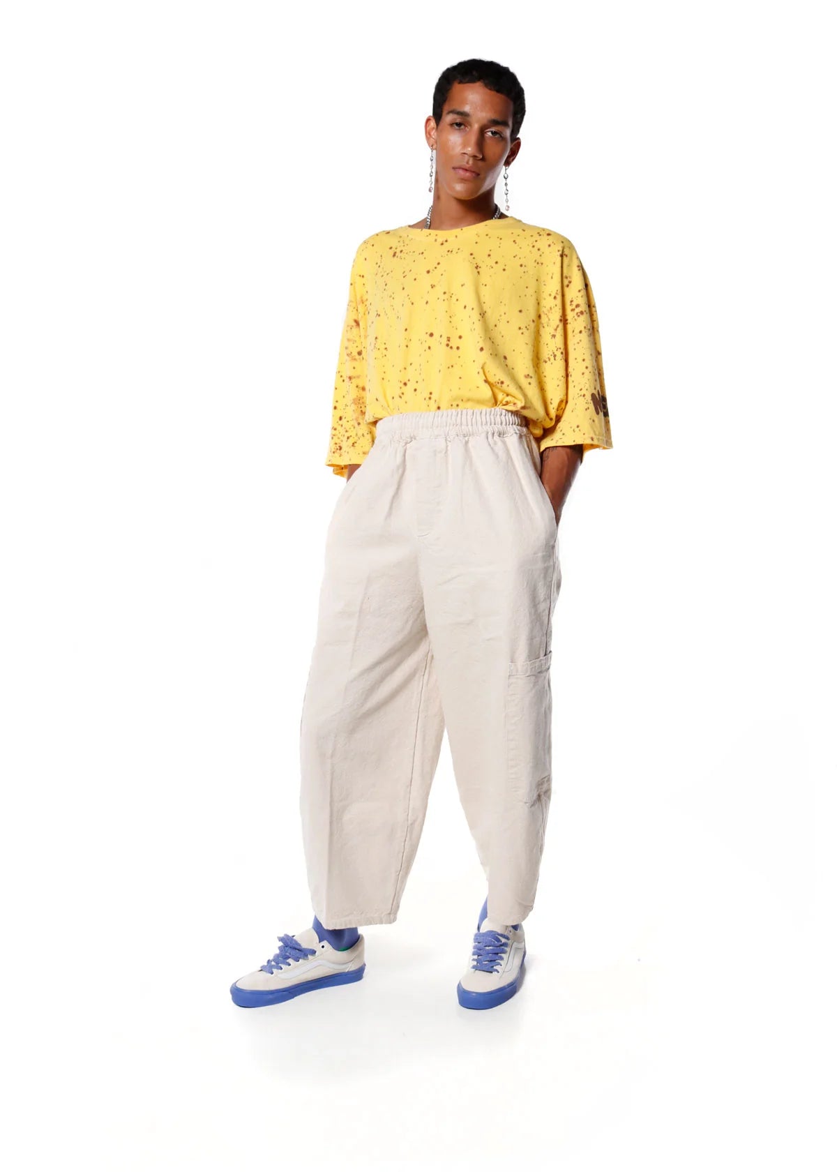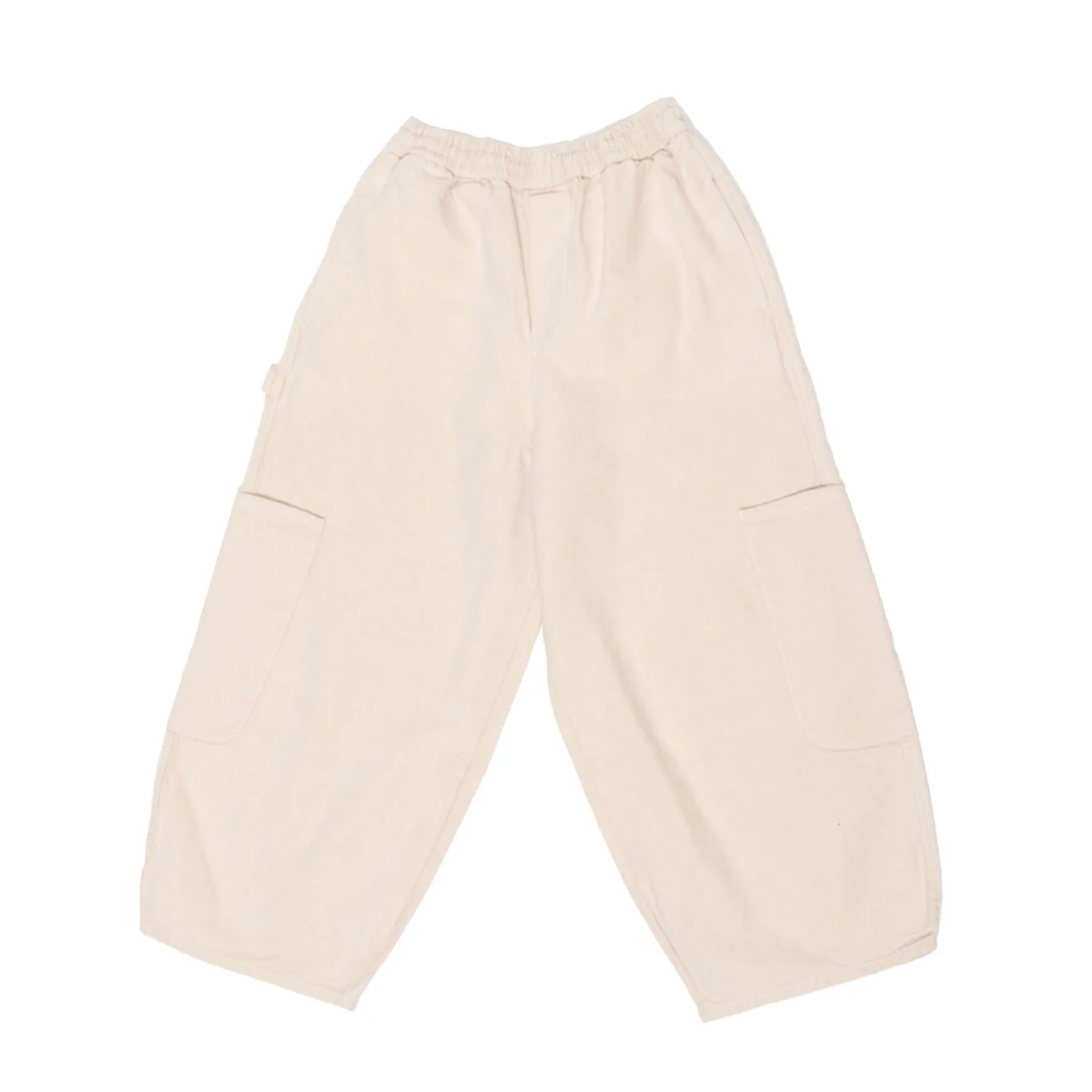 Cropped pants with 5 massive pockets. Elastic waist + drawstring.