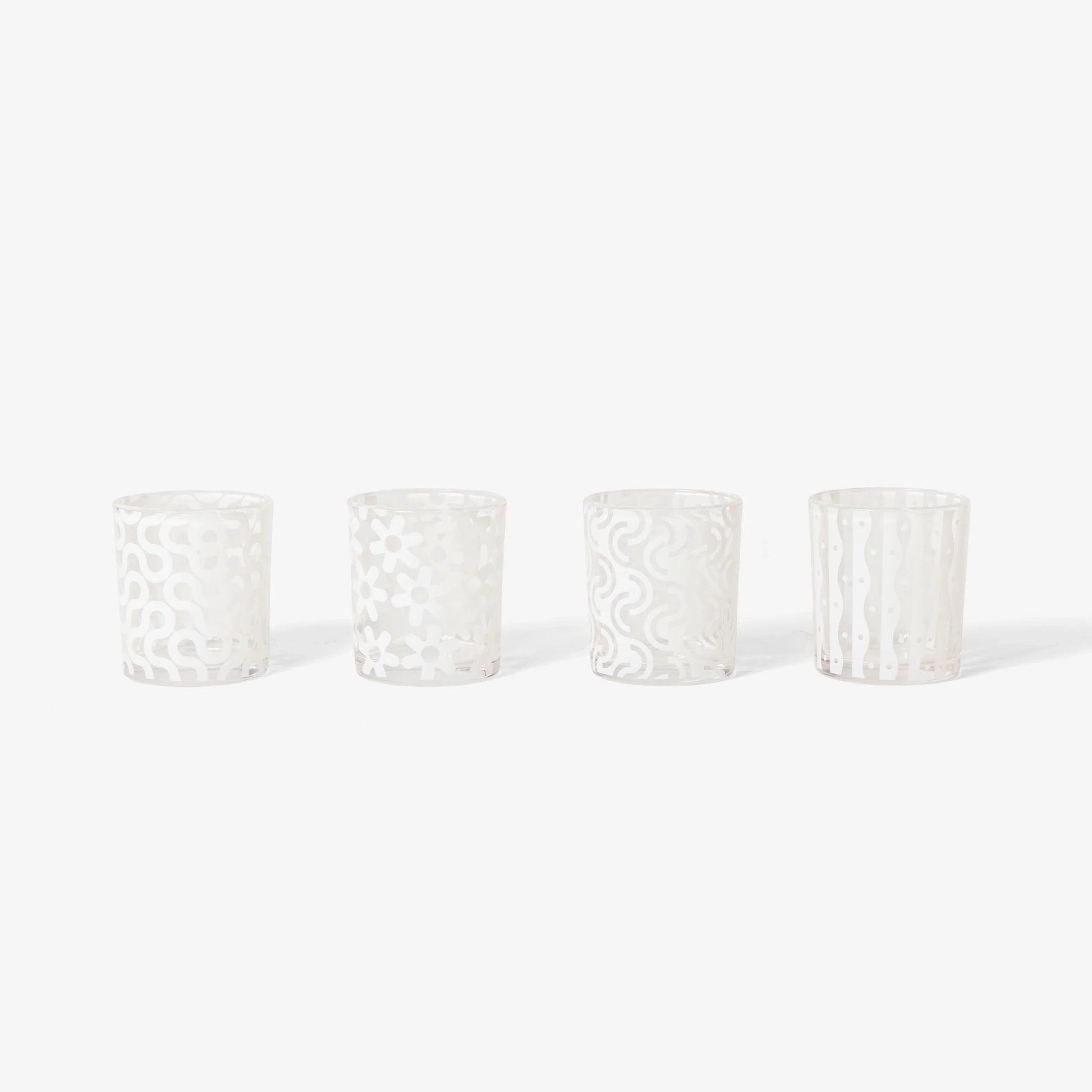 Pattern Glasses – Set of 4 White